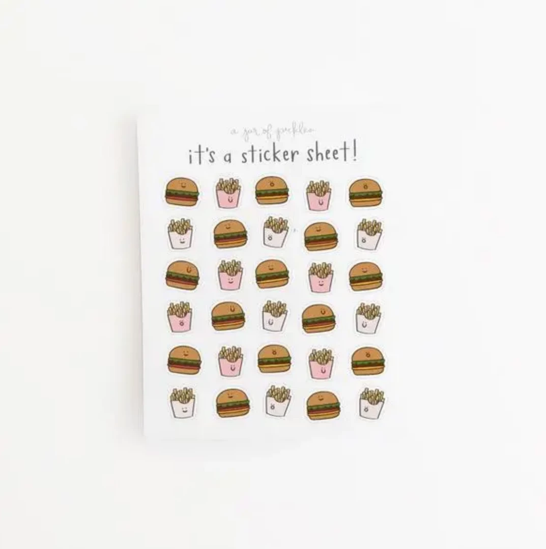 A Jar Of Pickles Mini Burger And Fries Clear Sticker Sheet Stickers