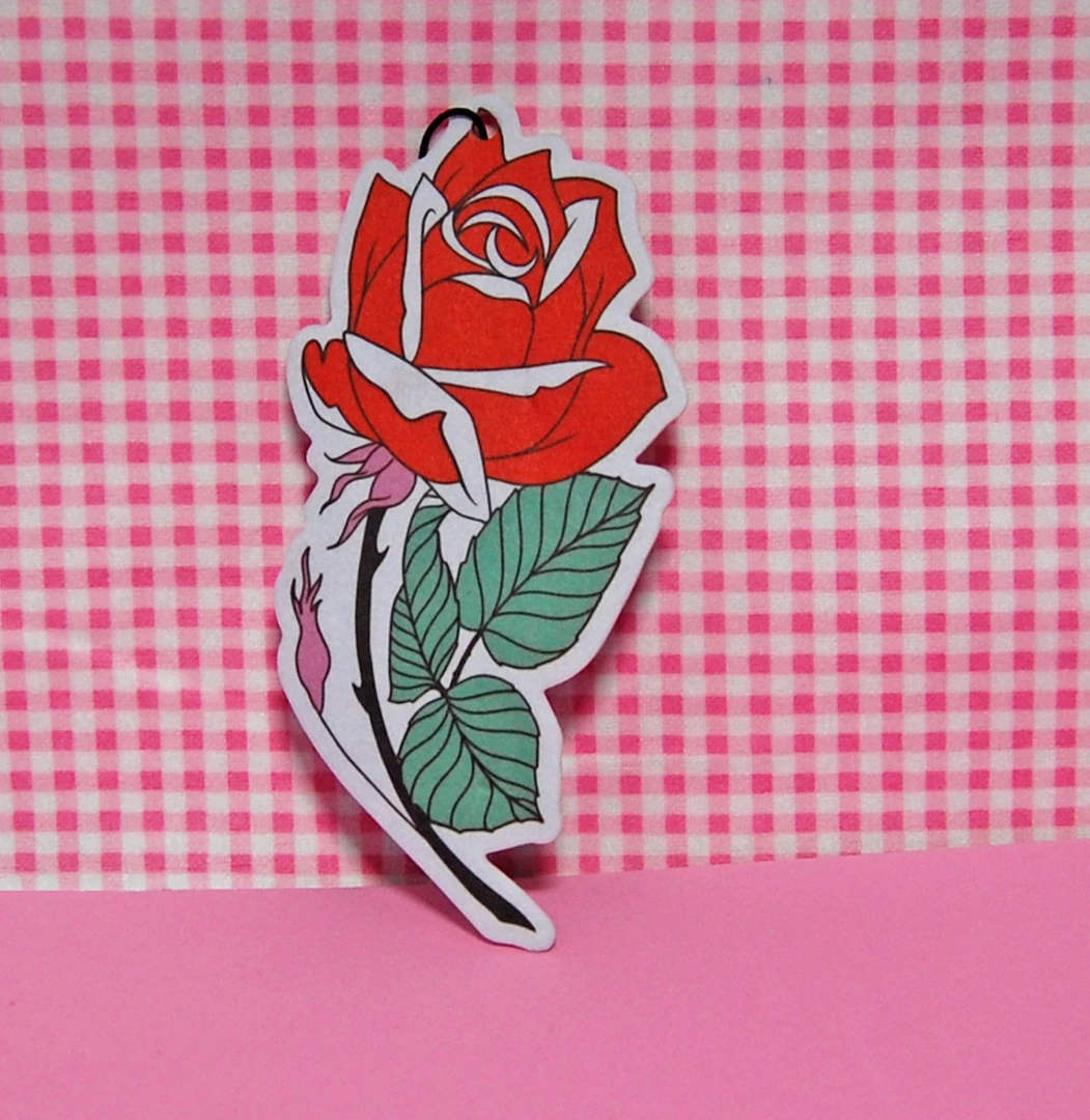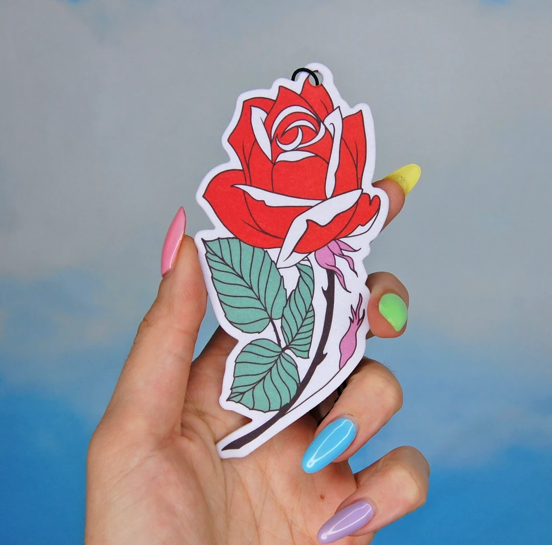 Make your car a little bit kitschier with this air freshener. Air freshener is cherry scented and comes with an elastic cord to loop around a rear view mirror. This scent was very polarizing at the ASOT HQ- some love and some hate! Smells just like the glossier balm in cherry so if you love cherry this is the one for you! Air freshener measures 3.5″ x 3.5″ and is double sided