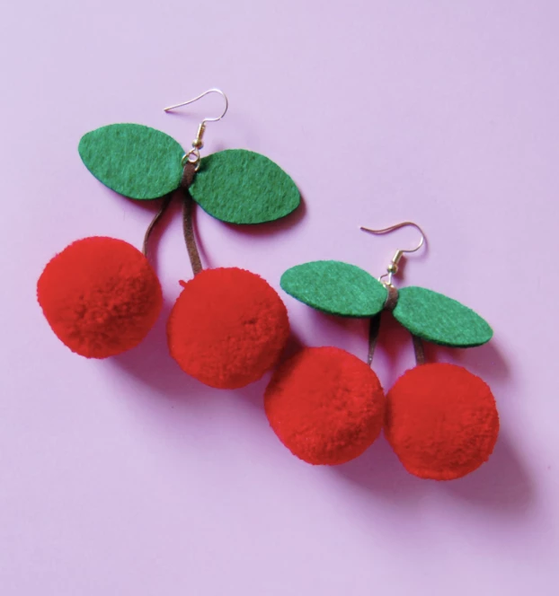How CUTE are these earrings? Lightweight cherry pom pom earrings I’ve been searching and searching for the perfect pair of cherry earrings and I think I’ve found them. Other pairs I tried were too heavy or they just plain broke but these are adorable and lightweight. Made from pom poms, suede and felt these earrings are trendy and they won’t hurt your ears.