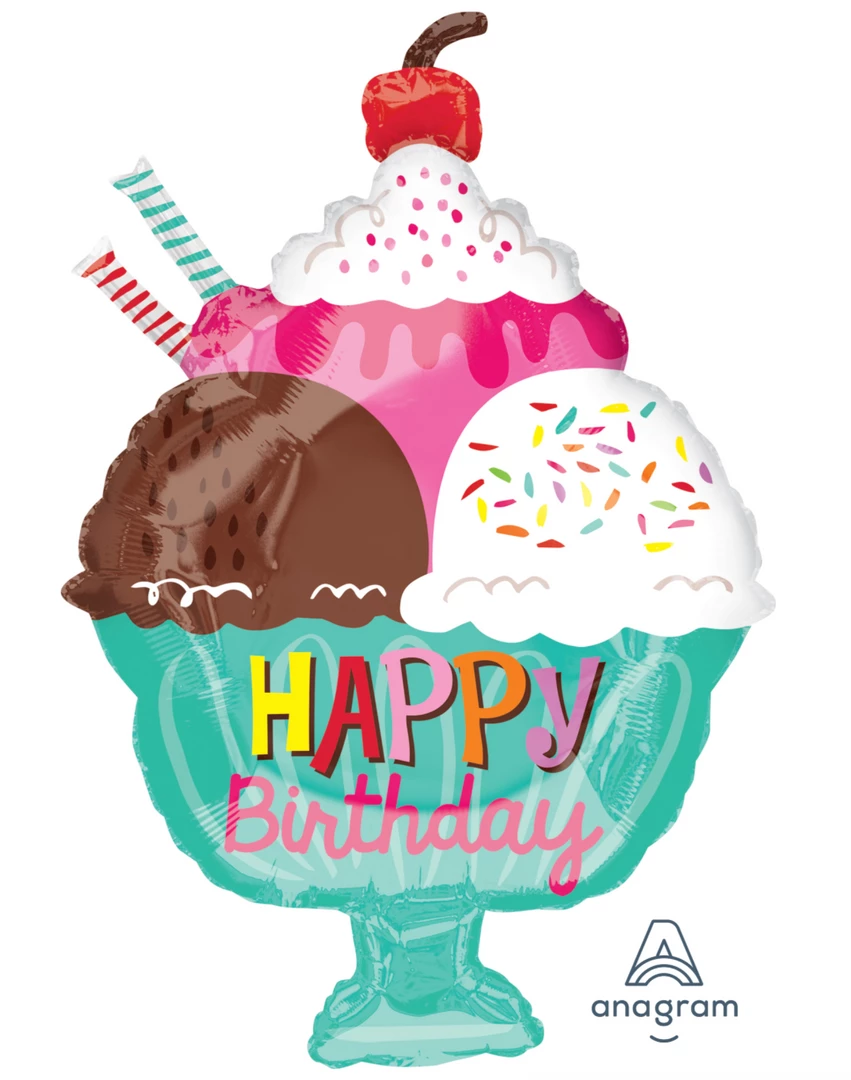 18″ Ice Cream Sundae Happy Birthday Foil Balloon
