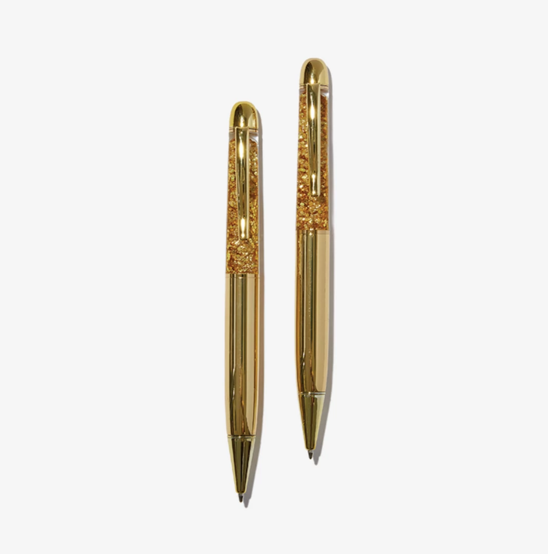 Write it down and takes notes. Our jumbo gold glitter floaty pen has a gold barrel and has a fun, unique water feature that showcases beautiful floating golden flakes. Use the clip to secure it to your day planner or journal and a retractable tip will save the lining of your tote or handbag from ink stains. Black ink.