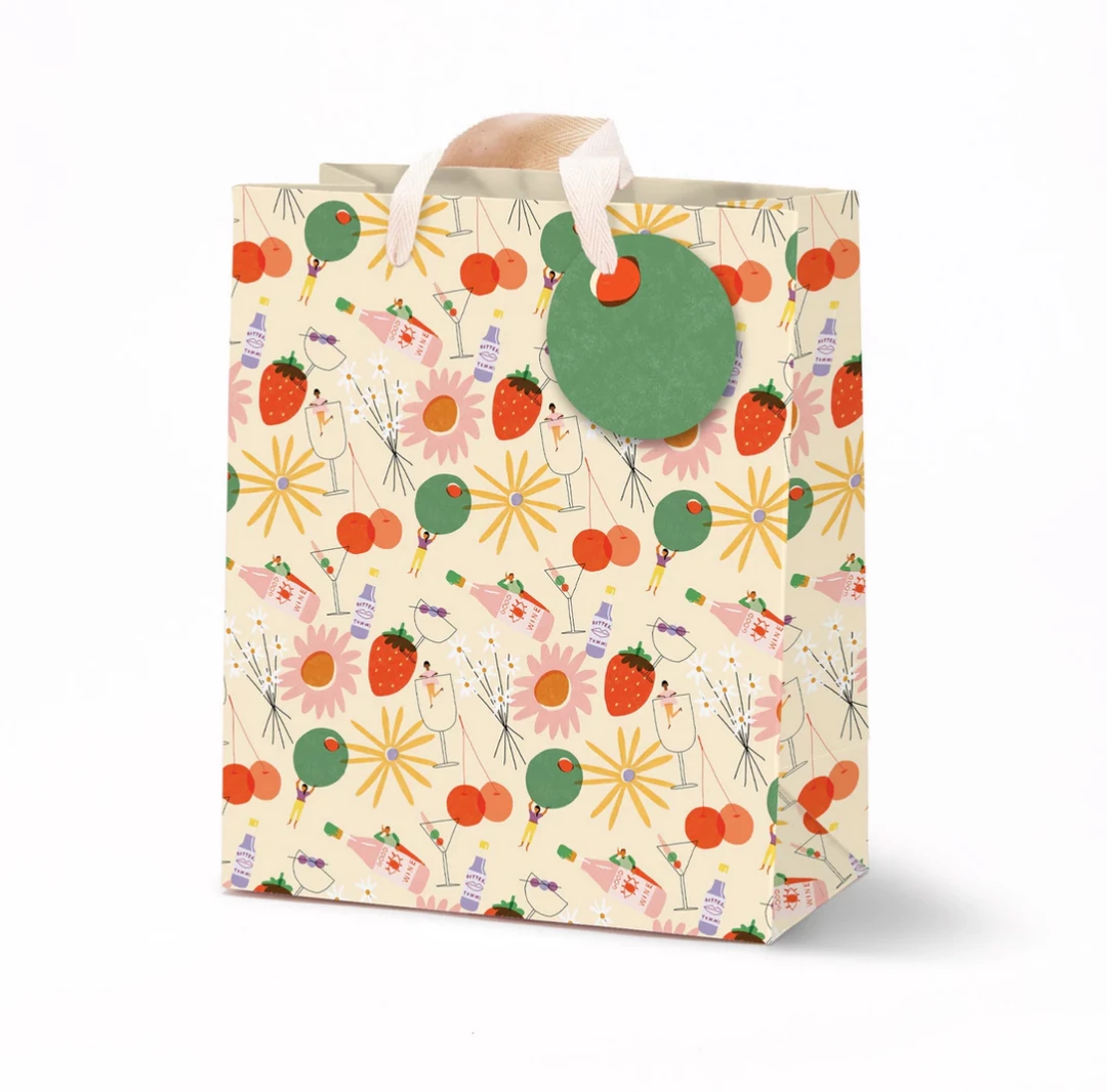 9.5″ x 8″ x 4″ Sturdy paper gift bag with gold foil details and flat-woven cotton handles