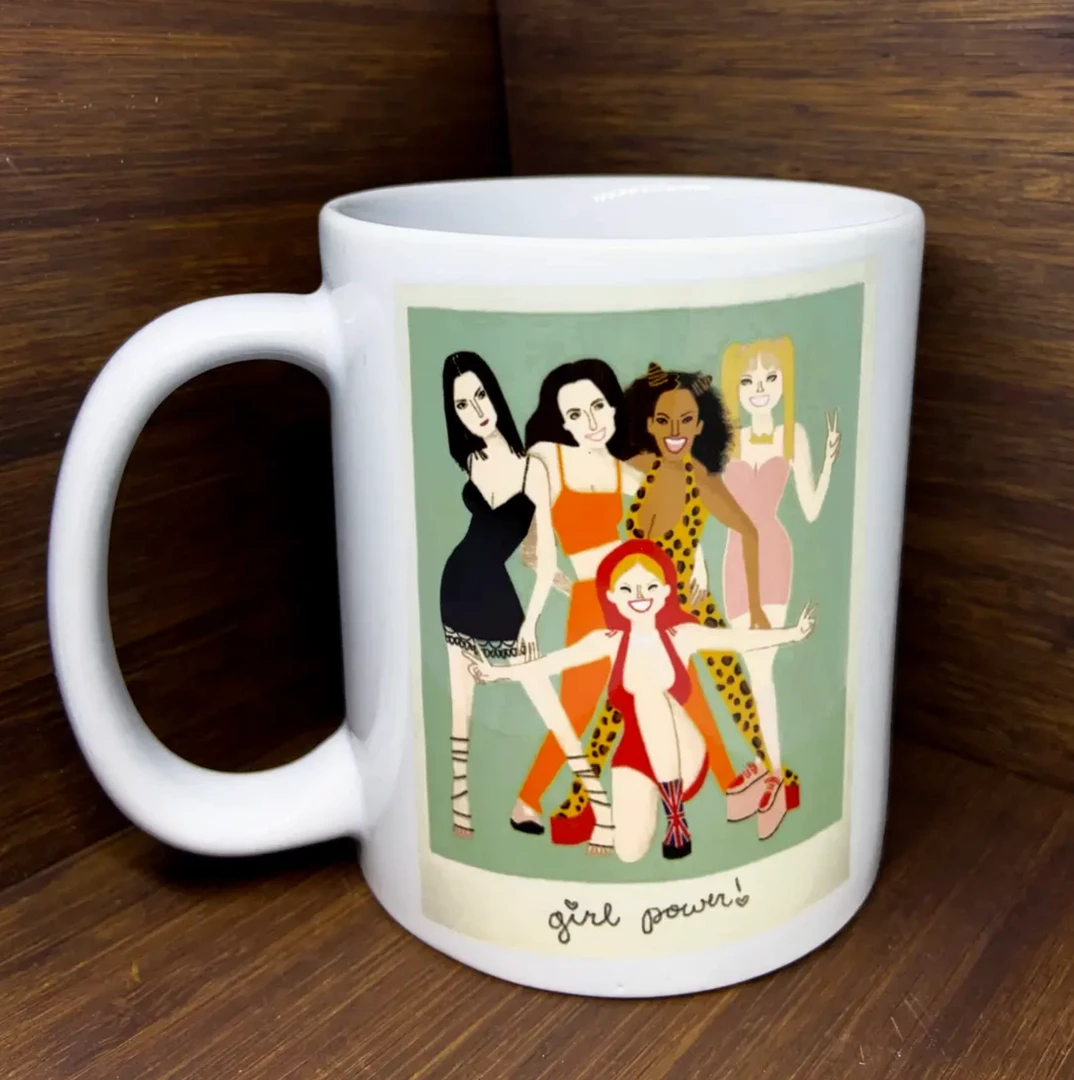 11 oz. white ceramic mug with original artwork of The Spice Girls. Artwork is licensed only to Citizen Ruth. Dishwasher and Microwave safe. Hand wash preferred.