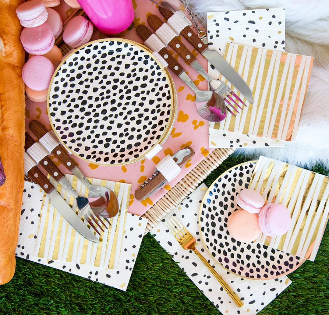 Understated and chic, these items are perfect for mixing and matching with our other collections from Posh to Bow Wow! With a selection of napkins and a dessert plate for all events. Paper Dessert Plates Pack of 8 Approx: 7″ Gold foil details Not safe for microwave use