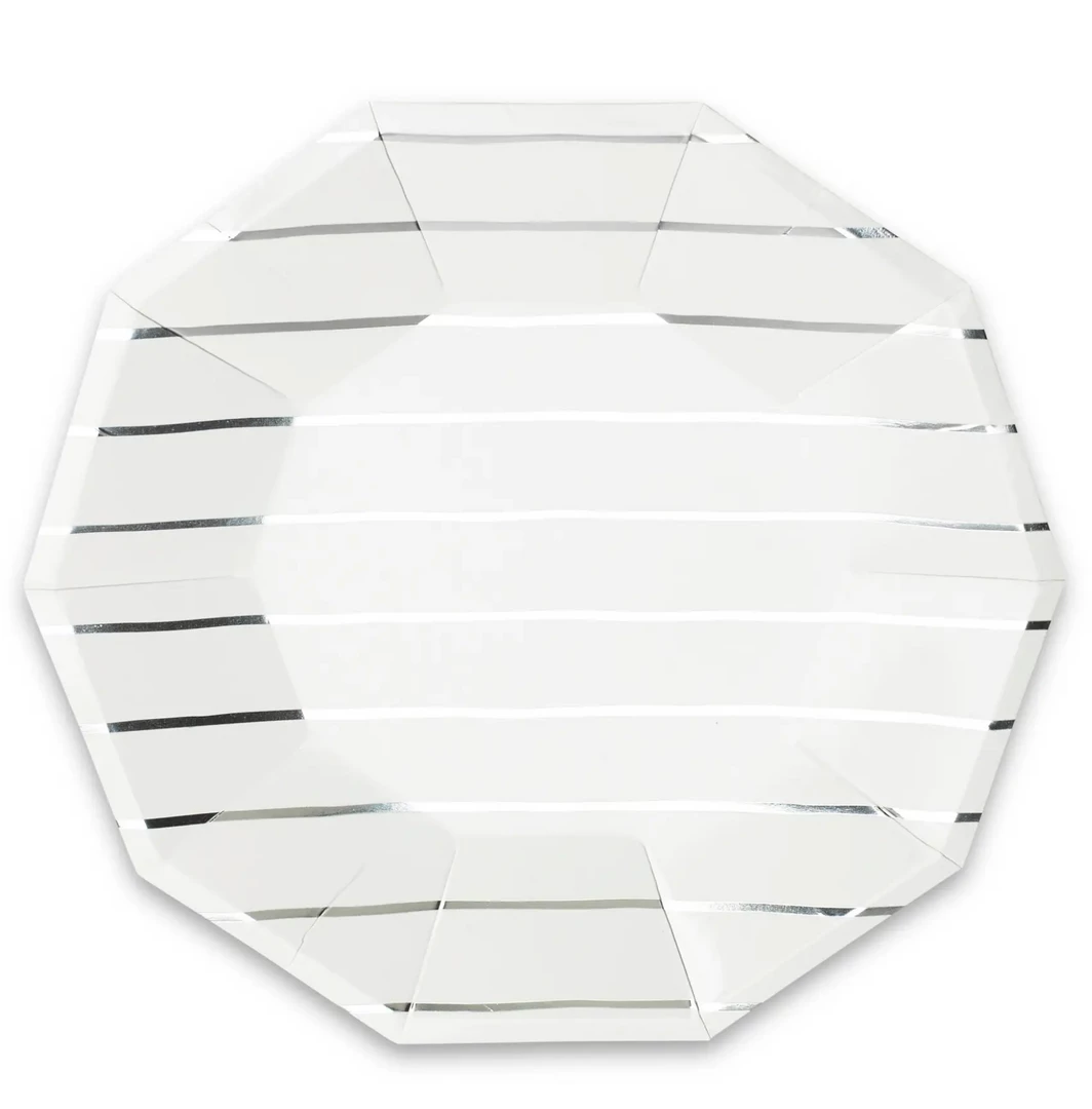 Daydream Society Frenchie Striped Large Silver Plates – 8 Pk.