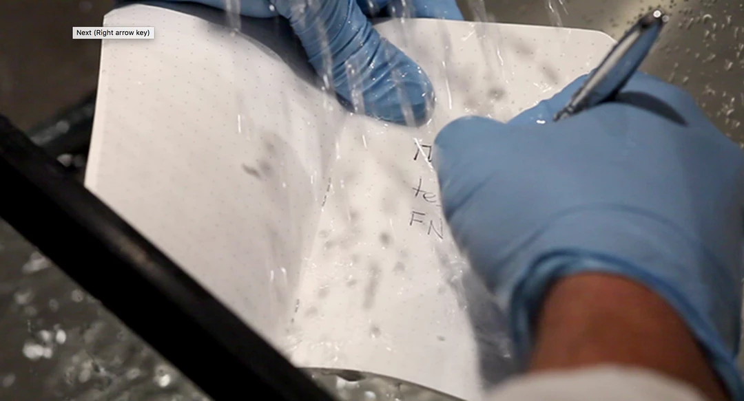 Innards: waterproof/tearproof Yupo Synthetic 57#T with a 1-color application of “Cartographer’s Gray” soy-based Saphira ink. (Use pencil/ballpoint pen for best results.)