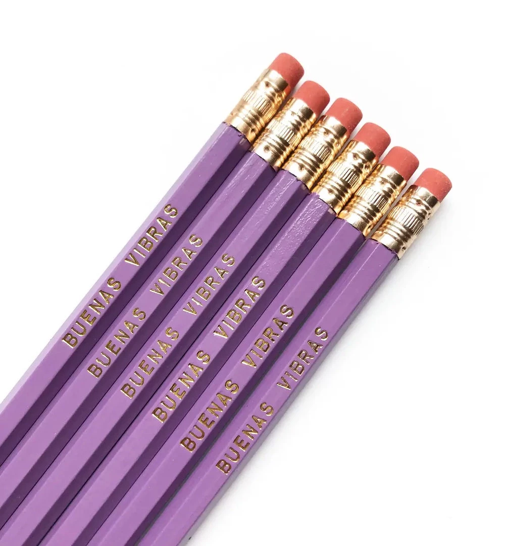 Each set contains 6 No. 2 hexagon pencils with gold ferrules and red erasers.