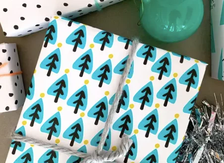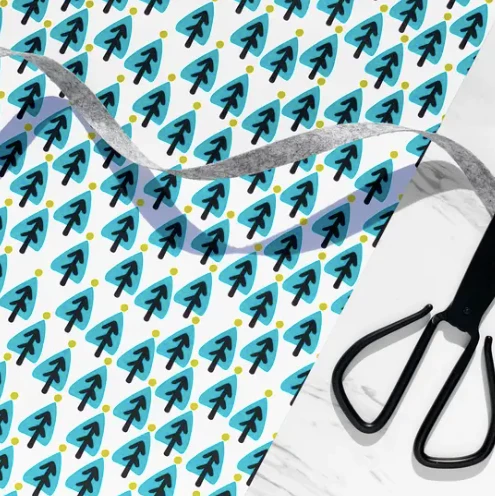 Modern Little Green Trees wrapping paper is just what you need to help the holiday spirit grow! This listing includes one 29” x 20″ sheet. It’s designed and printed in California on 70# matte paper.