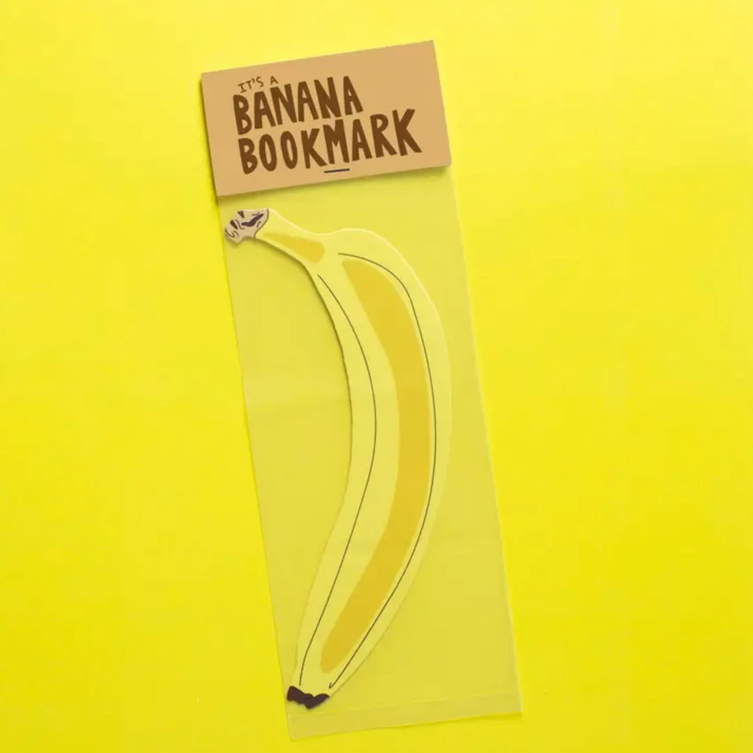 It’s a banana in a book! Bookmarks are underrated… until you have a piece of fruit sticking out of your everyday fiction or cookbook. Bookmarks are printed double-sided on a sturdy 18pt Cover paper stock. Packaged one per cellophane bag with scored card closure.
