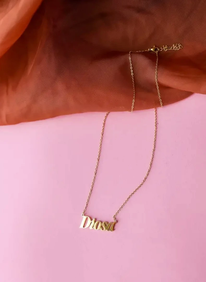 Gold plated over stainless steel. 18 in. chain. 3 in. extender chain. Ships in a pink JZD box ready for gift giving or to look cute on your vanity. Tranquis= Chill. Care Instructions: This item should be kept away from moisture and should not be worn in the shower. We are not responsible for replacing discolored items after use.