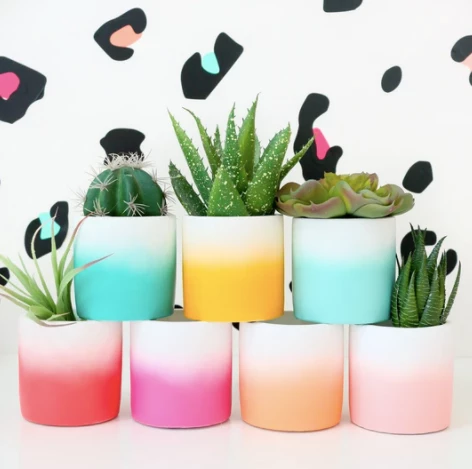 These cement planters are perfect for succulents or small cacti. Choose your color ombre in the drop down menu.