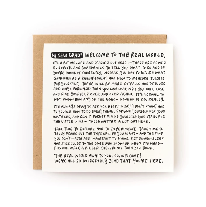 4.75″ x 4.75″ folded card Blank inside Letterpress printed on luxe soft white cardstock Paired with a recycled Kraft envelope Printed by hand on an antique letterpress in Brooklyn, New York. Due to the printing process, which is done entirely by hand, there will be slight variations from print to print, ensuring each card is one-of-a-kind. Postage: square envelopes require a $0.70 stamp
