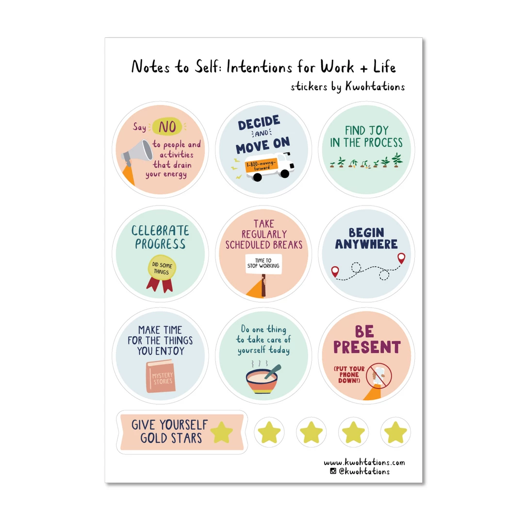 Kwohtations Cards Stickers Intentions For Work & Life Sticker Sheet