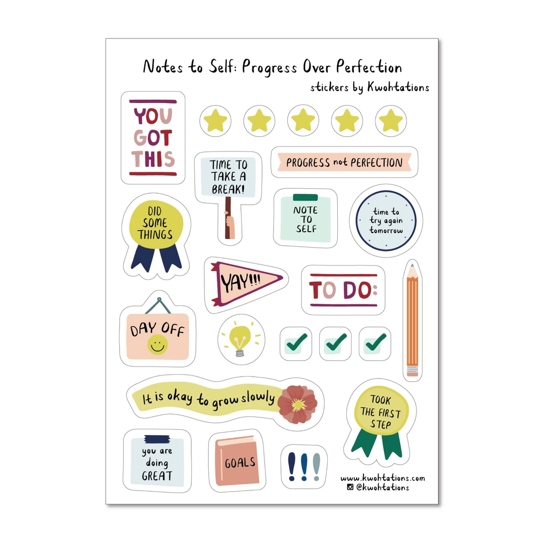 Kwohtations Cards Stickers Progress Over Perfection Sticker Sheet