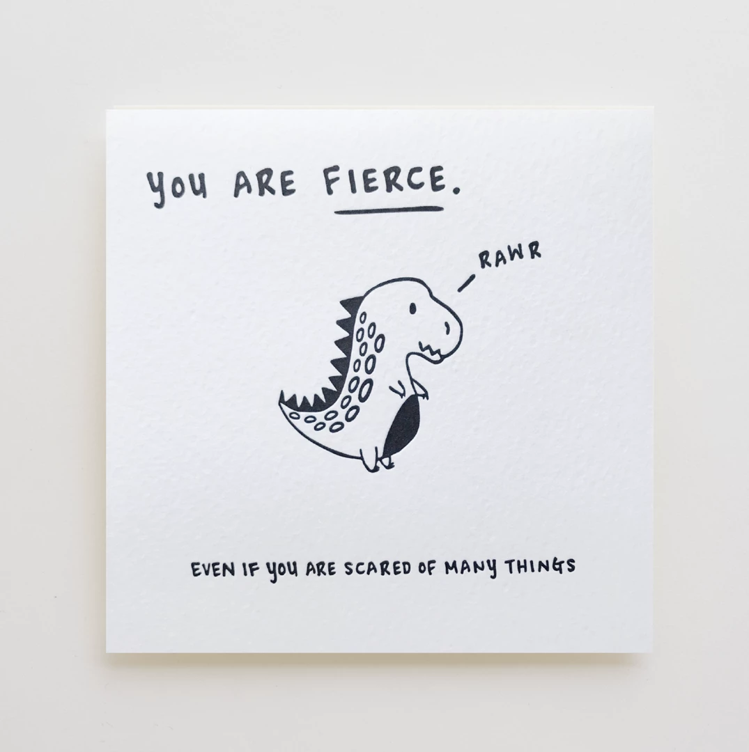 You are fierce, even if you are scared of many things. PRODUCT SPECS // 4.75″ x 4.75″ (folded) / Blank inside / Letterpress printed / Paired with a recycled kraft envelope