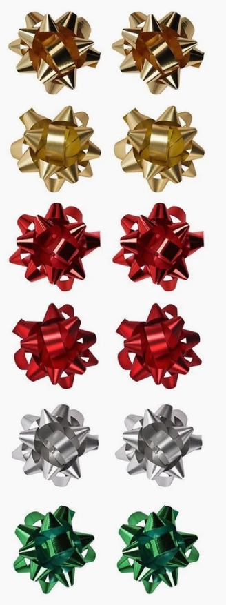 LA Ribbons & Crafts INC 2″ Christmas Star Gift Bow Bundle-Red/Gold/Green/White 12pcs Gift And Favor Supply