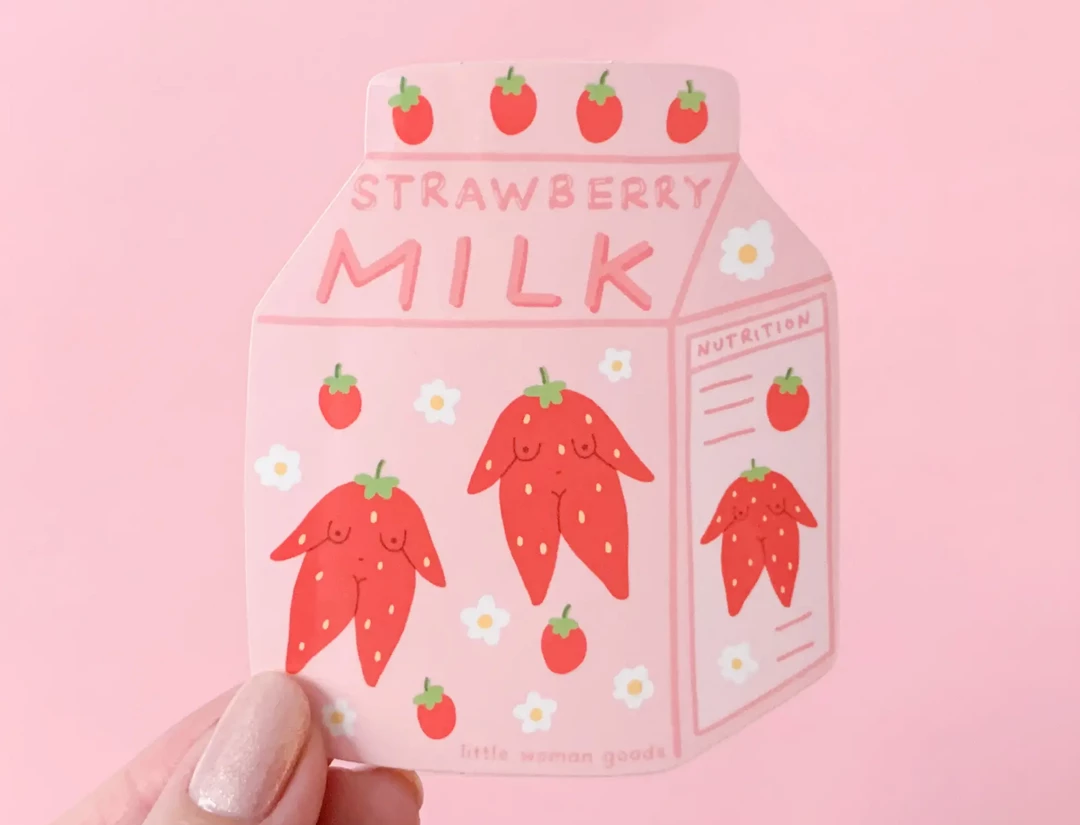 Little Woman Goods Stickers Strawberry Milk Vinyl Sticker