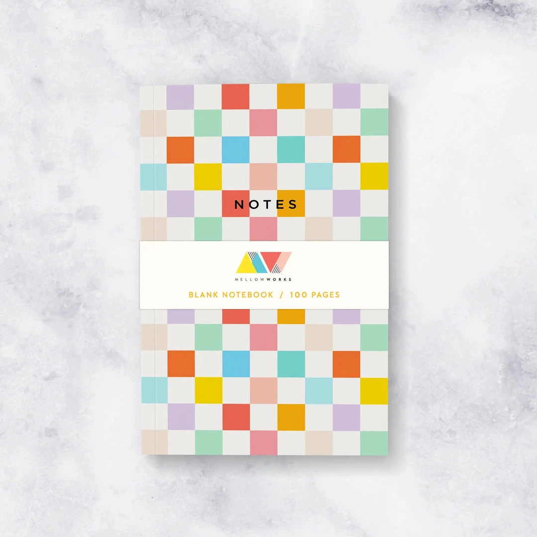 What can be more fun than this cool and trendy new checkerboard pattern notebook!. Our RETRO inspired RAINBOW CHECKERBOARD NOTEBOOK is sure to make heads turn!!. A durable soft touch cover with blank pages is perfect to carry in a bag all day or brighten a desk with the pops of color. Great for everyday note taking, sketching or writing!