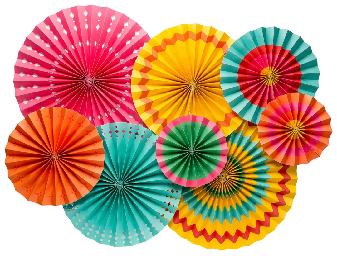 We need to taco ’bout your party. Decorating for your fiesta doesn’t need to be complicated, just grab these party fans and set the backdrop for your fiesta. Add our fiesta and cactus banners for effortless decor for your gathering. If you are planning to hang these festive rosettes above the food table, be sure to grab our cactus tabletop decor set, food cups, fiesta plates and napkins to tie the whole party together. • Includes all 8 fans pictured • 2 – 17″, 2 -14″, 2 – 11″ and 2 – 8″ fan • Double sided Each fan has an adhesive strip and a paper clip for temporary use. The fans have a string attached for hanging.