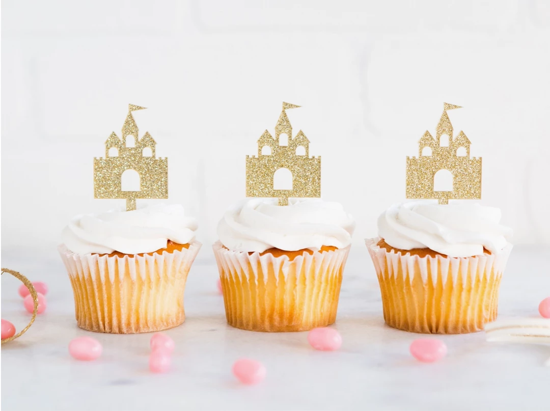 Enchant your party guests with our Princess Castle Cupcake Toppers. These gold glitter Castles Toppers create a wonderful decoration for any of your party food. Add them to cupcakes, brownies, appetizers or any other tasty treats!