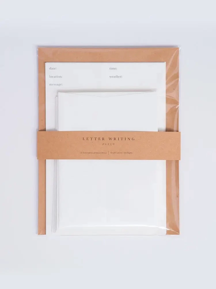 - 12 letterpress printed letter writing sheets–8.25″ by 5.75″
