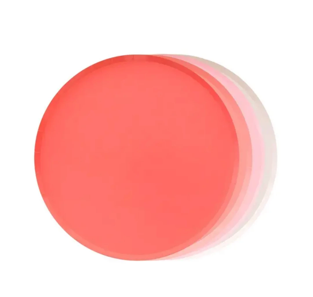 4 assorted colors, Ballet, Blush, Neon Coral & Coral, 2 plates per color, Delicate low profile rim