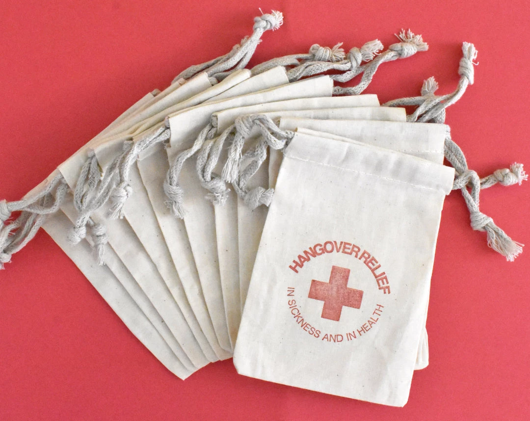 This listing is for ONE hangover relief bag (4×6 pictured), hand-stamped.