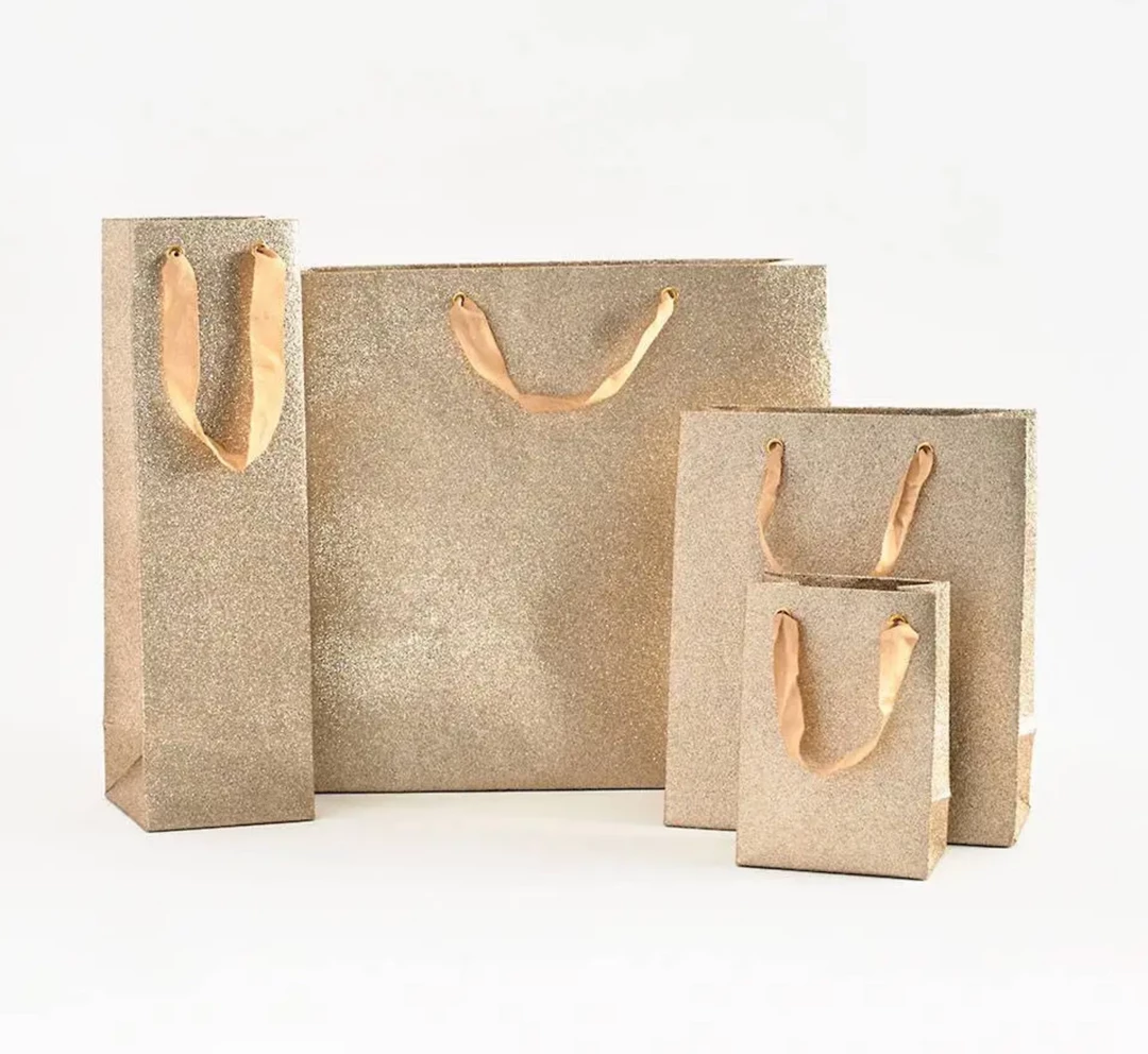 Made from sturdy fine paper that is handcrafted in India, and often made from readily available resources, like natural plant materials. Matches our champagne glitter wrapping paper for those who want a full suite of sparkle.