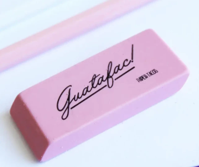 For mistakes that make you yell, “GUATAFAC!” * Pink with black imprint * Latex free rubber eraser * Dimensions: 1-1/8″ H x 2 1/2″ W x 1/4″ D
