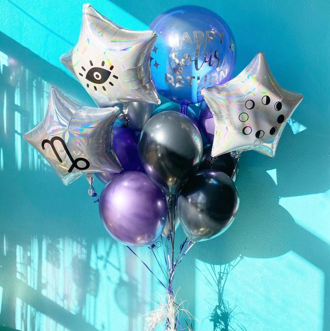 – Bubble balloon in transparent clear with ” Happy Solar Return” decal