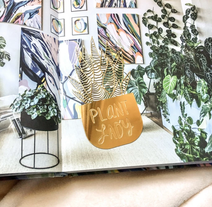Show your plant love with this potted zebra plant brass bookmark. Features engraved lettering “Plant Lady” Laser cut and engraved.
