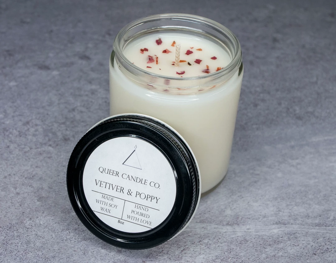 These soy wax candles are hand-poured, clean-burning, and made in recyclable and reusable containers right in the Queer Candle Co. NYC workshop.