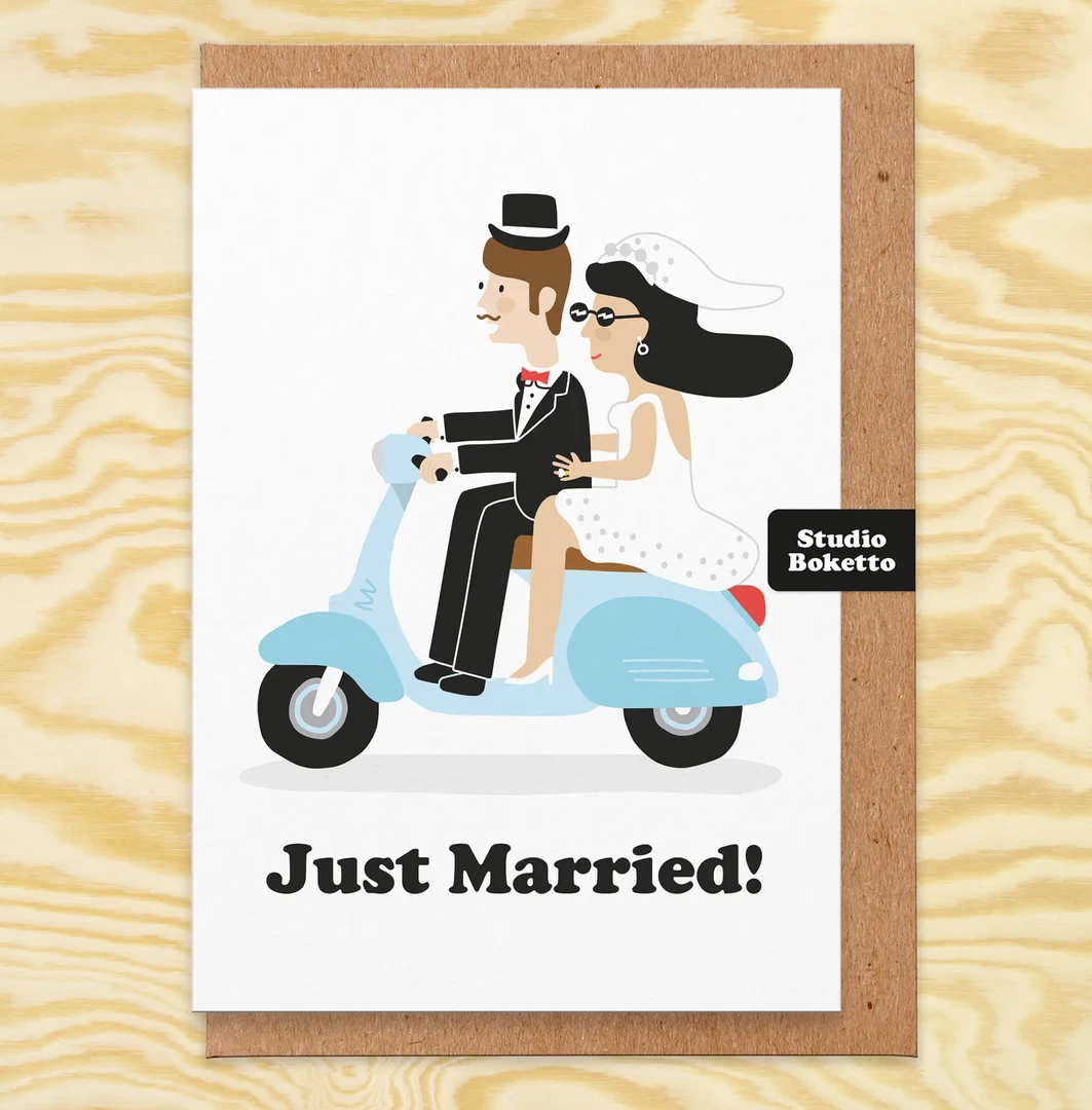 Studio Boketto Just Married Scooter Wedding Card Greeting Cards
