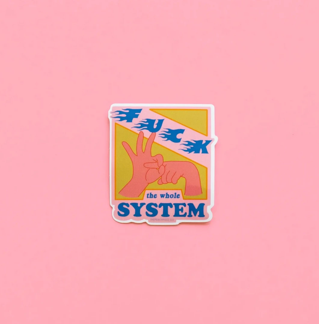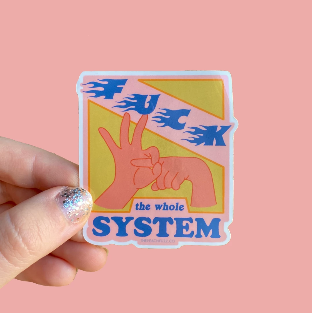 Vinyl water resistant sticker with a glossy finish. Measures 2.3 x 2.5 inches.
