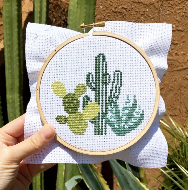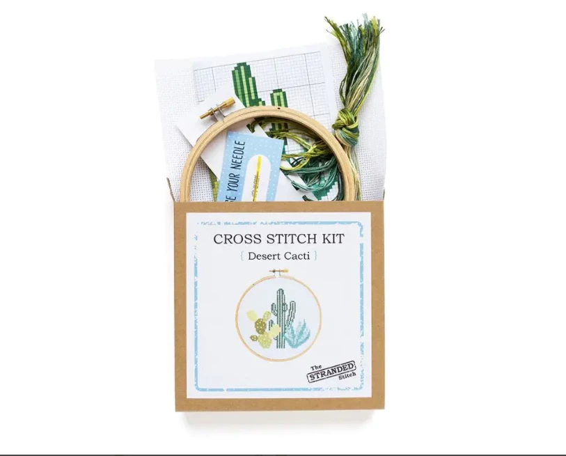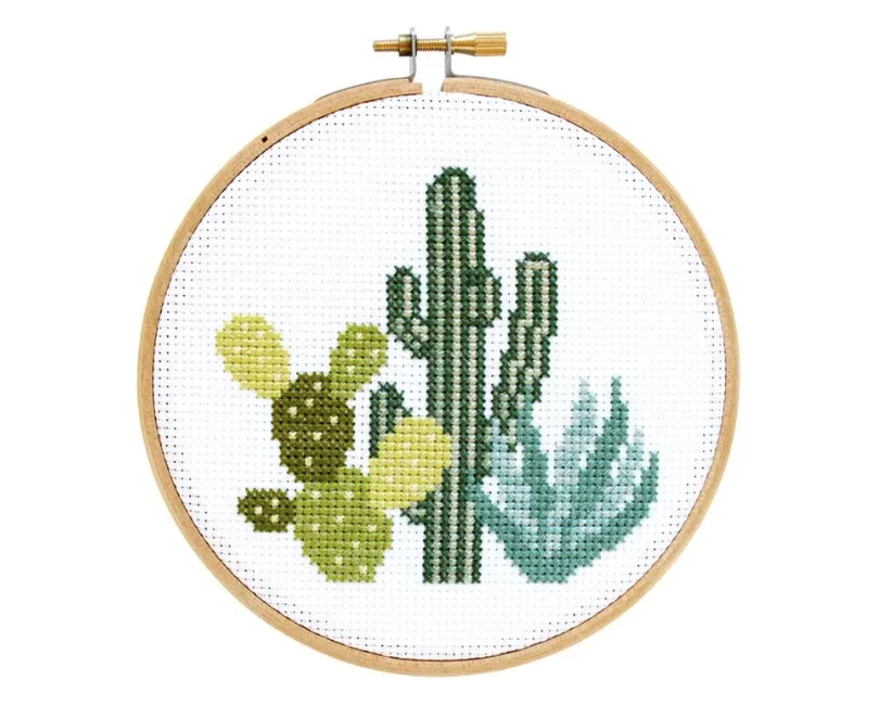 Kit Includes: counted cross stitch pattern, embroidery needle, embroidery hoop, DMC embroidery thread, 14 count aida cloth, step by step instructions. Box: 6.25″ x 1″ x 6.25″. Newbie: simple designs meant for everyone, the quickest projects to complete. Desert cacti: 5 inches. DIY.