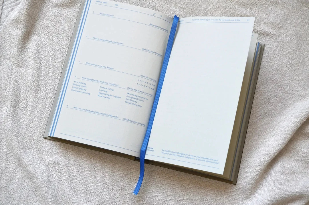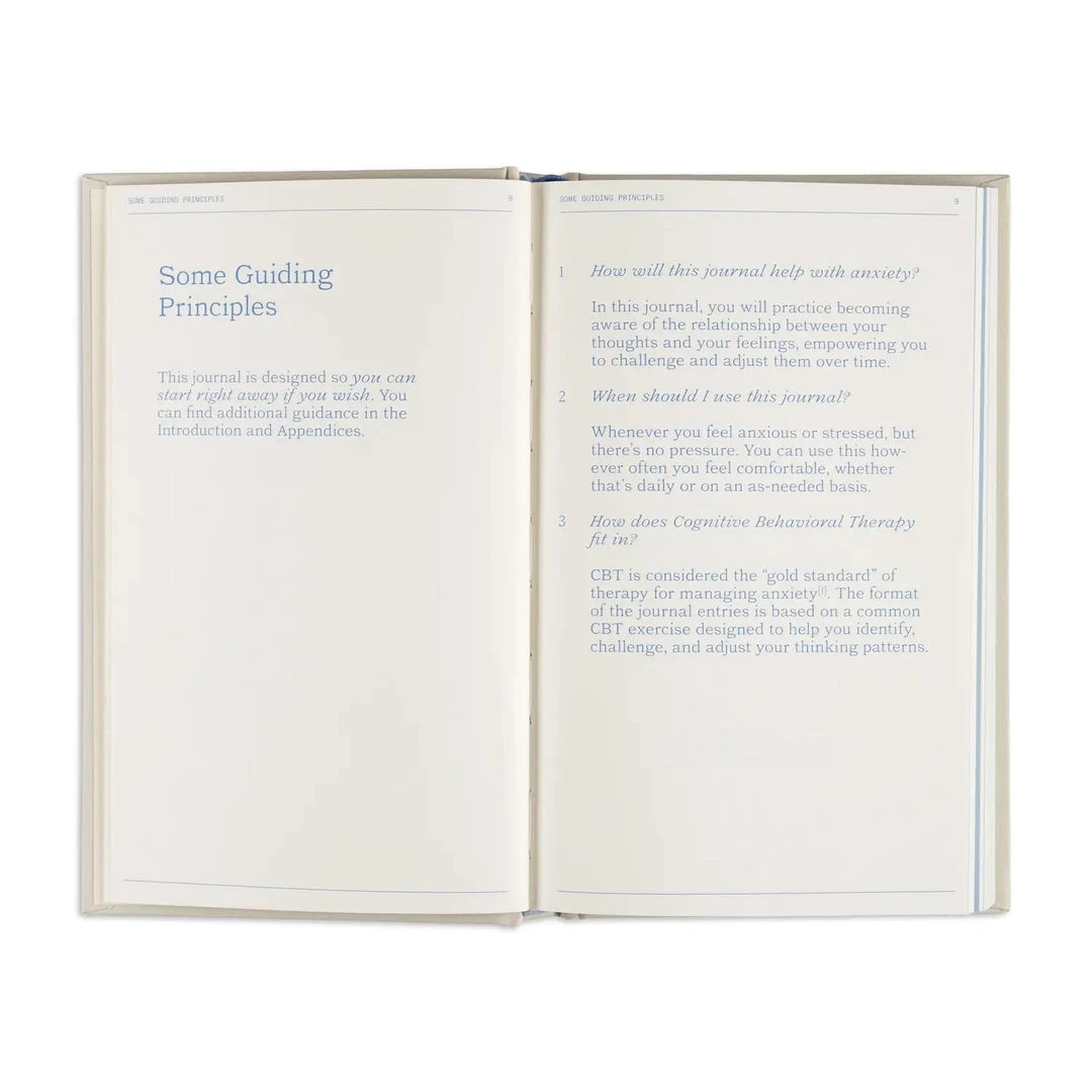 Designed by therapists, the Cognitive Behavioral Therapy (CBT)-based notebook entries are made to help you track your emotions, become more aware of thought patterns, and grow over time specifically to reduce anxiety and manage stress.