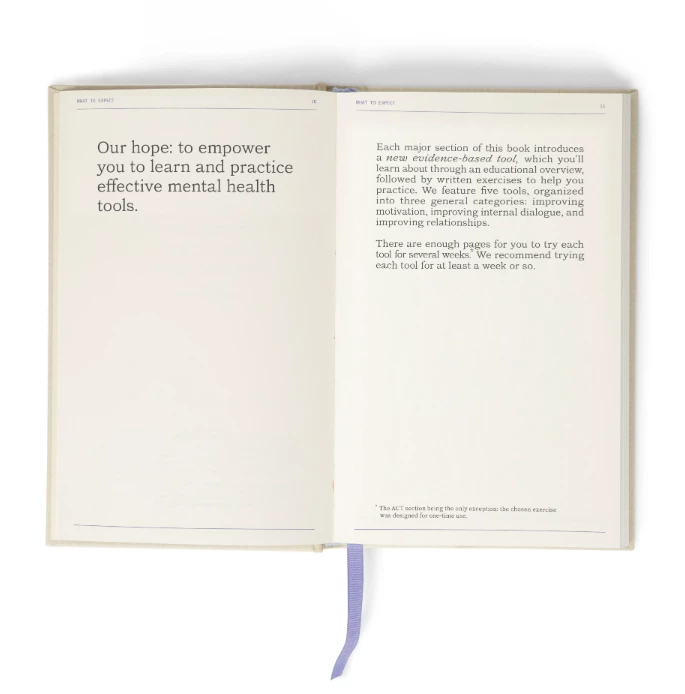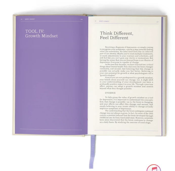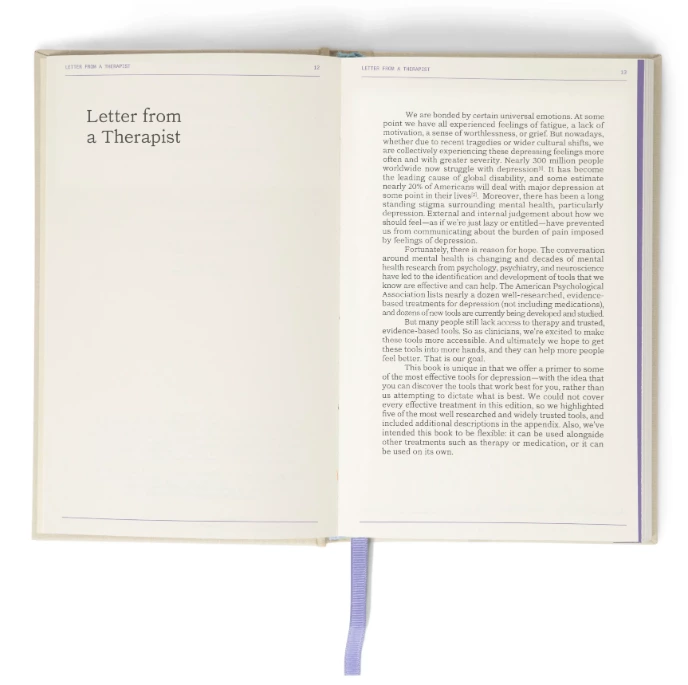 This guided notebook uses expert guidance, science-focused education, and structured exercises to help you learn evidence-based tools for depression. These tools will help improve your motivation, your internal dialogue, and your relationships.
