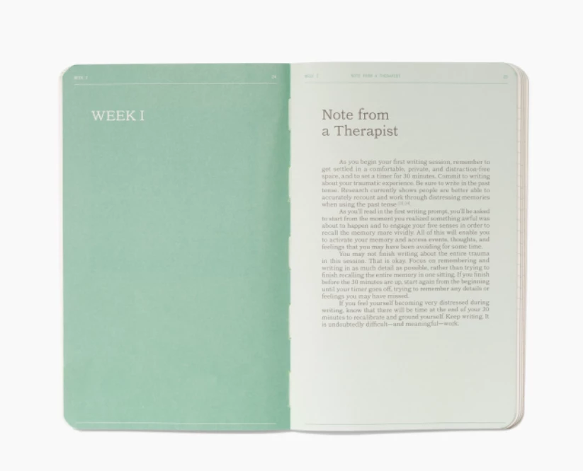 -5 weeks of guided journaling sessions -Notes and tips from therapists to aid your healing journey.