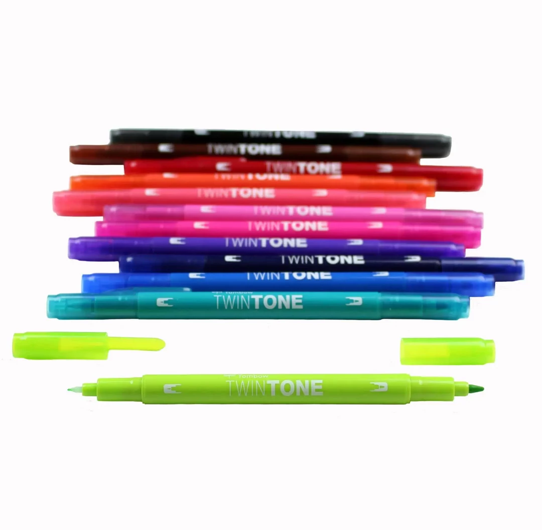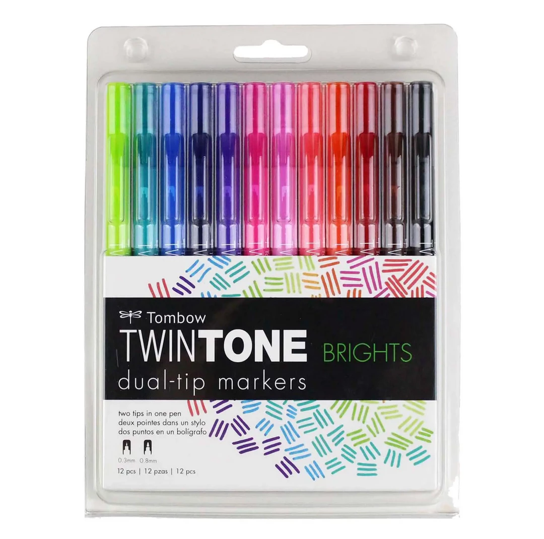 Tombow TwinTone Marker Set: Bright – 12-Pack Pens + Pencils