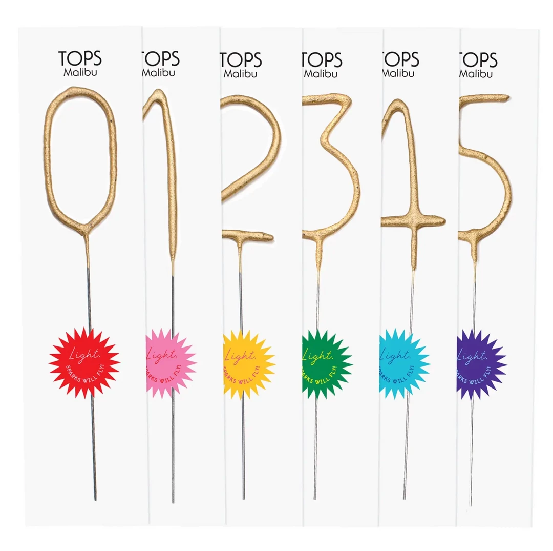 From birthday to graduation parties, anniversaries to New Year’s Eve, celebrate any occasion with golden sprinkles of joy! Sparklers are great as cake toppers, gift packaging, adornments or attached to special cards. Also available as letters and shapes. 8″ tall Clean burning Made in Europe & the USA Please select your number in the drop down menu, before adding this product to your shopping cart. (Adult supervision required.)