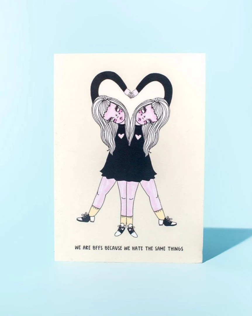 This greeting card is made of paper and opens to a blank page with no message inside.