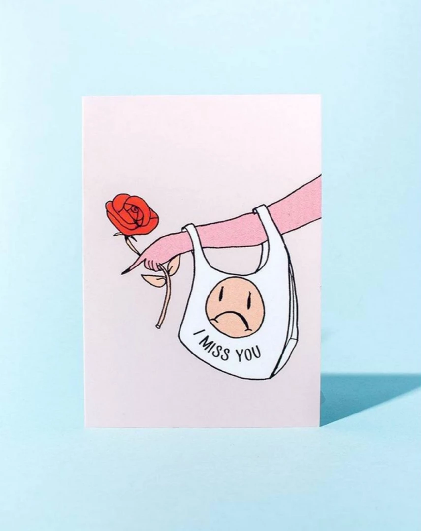 This greeting card is made of paper and opens to a blank page with no message inside.