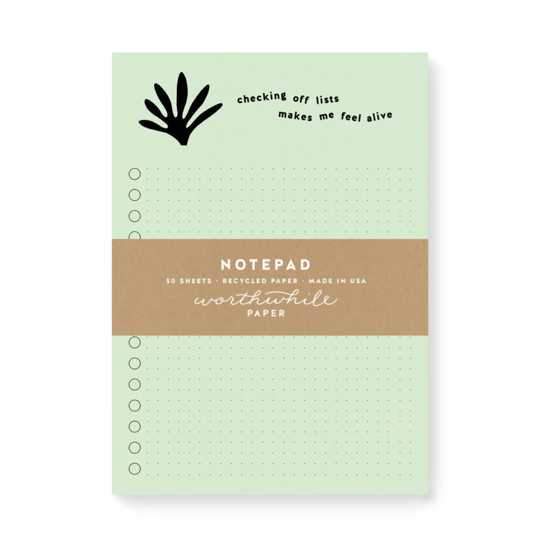 Paper: 100% recycled green paper Inks: Black Size: 5 x 7″ Single note pad